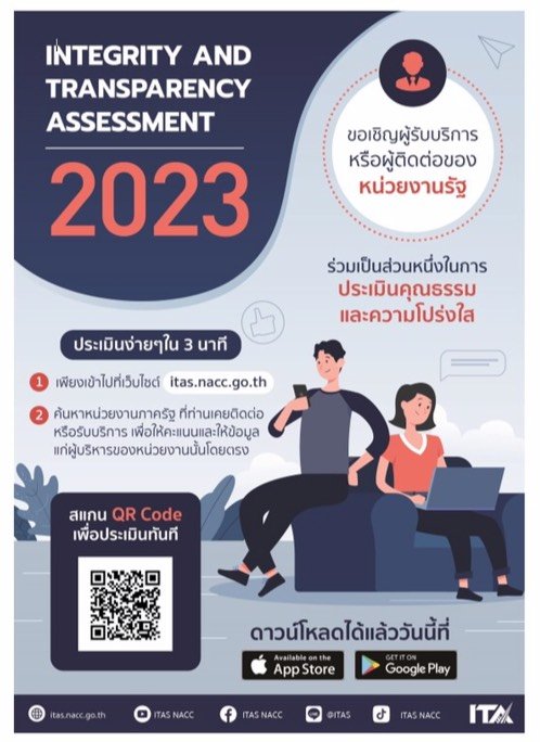 ขอเชิญร่วมตอบแบบประเมินคุณธรรมและความโปร่งใสในการ ดำเนินงานของหน่วยงานภาครัฐ (ITA) ประจำปี 2566